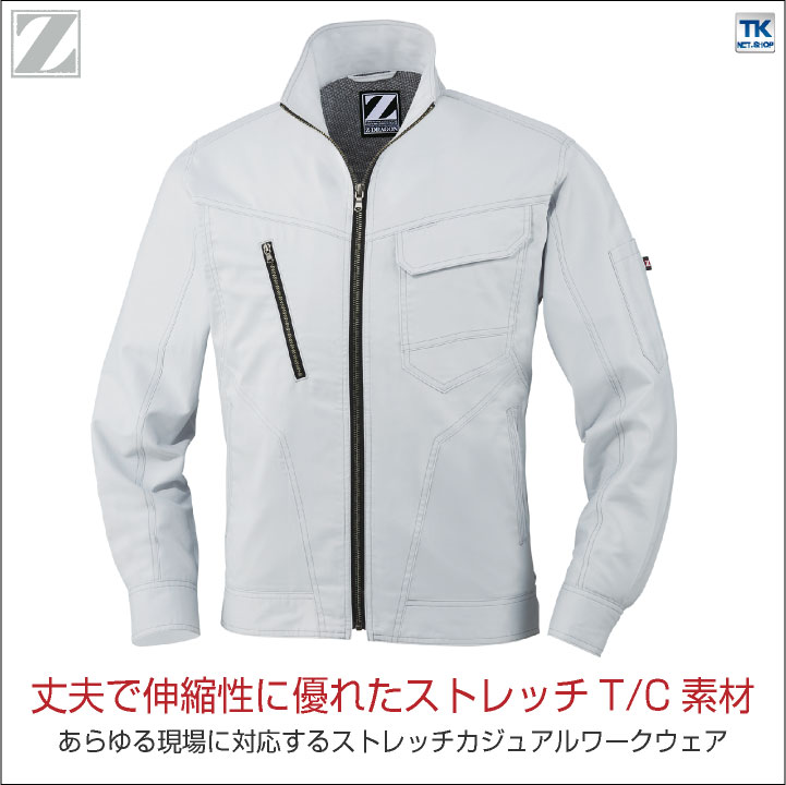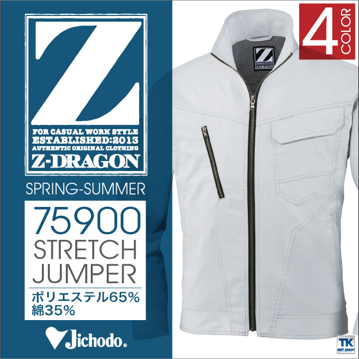 自重堂 Z-DRAGON 75900 ストレッチ長袖ジャンパー 商品の特長 丈夫で伸縮性に優れたストレッチT/C素材 あらゆる現場に対応する ストレッチカジュアルワークウエア 時代とともに多様化する消費者ニーズに応え 企業向けワークのみならず ファッションに敏感な個人ワーカーの 心にも響く、洗練されたスタイリングが特徴です。