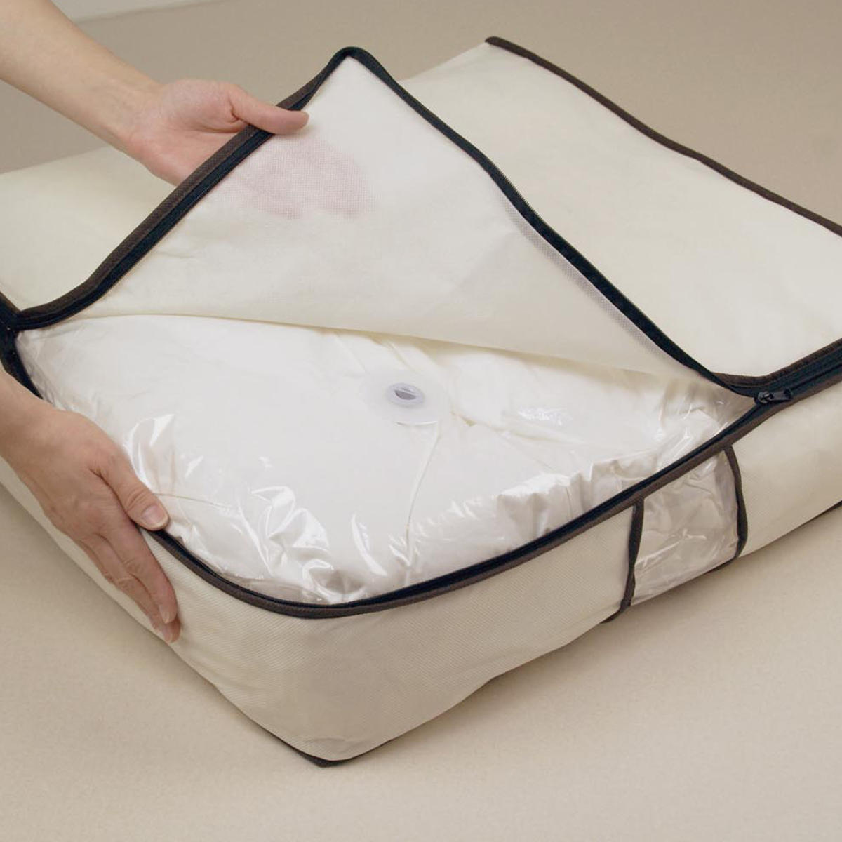 おすすめポイントスペースを節約してすっきり収納かさばって押し入れやクローゼットを埋め尽くす布団を、圧縮してコンパクトに収納します。