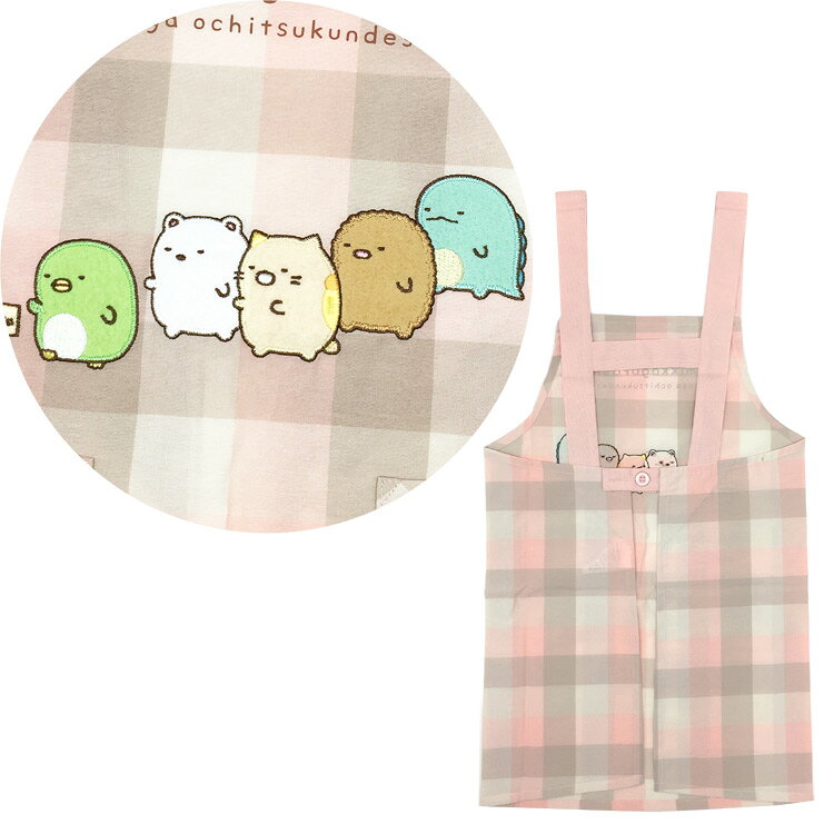 すみっコぐらし キャラクター子供エプロン チェックH型 ピンク 130cm 868983 すみっこ こども 学校 お手伝い