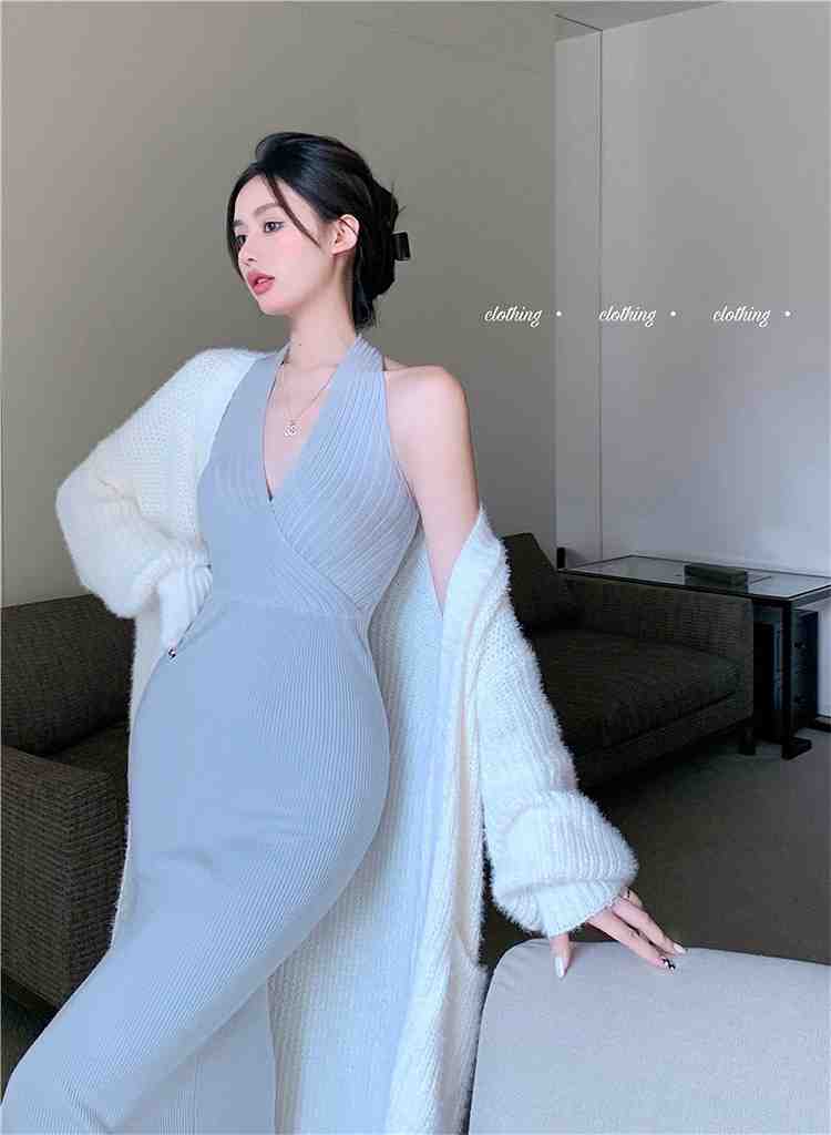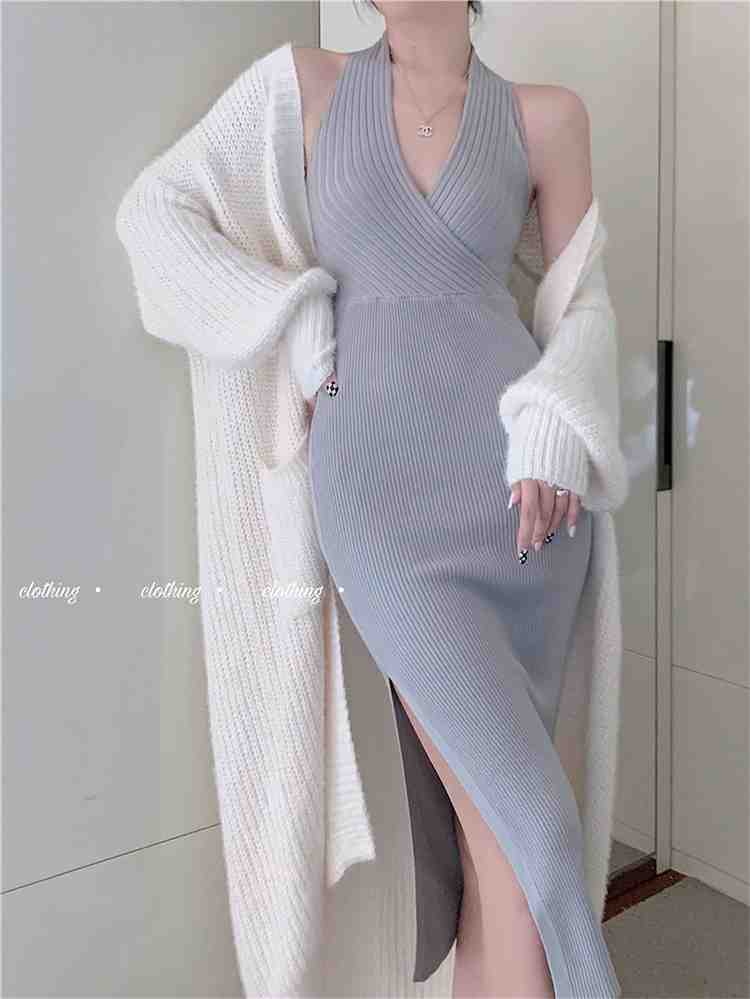サイズ・容量【素材】アクリル ■カラー:画像の色(ワンピース),ホワイト(カーディガン)"カーディガンサイズ:着丈:約102cm 袖丈:約52cm バスト:約128cm 肩幅:約57cmワンピースサイズ:着丈:約112cm ヒップ:約76cm バスト:約86cm※サイズについては2-3センチの誤差があります。